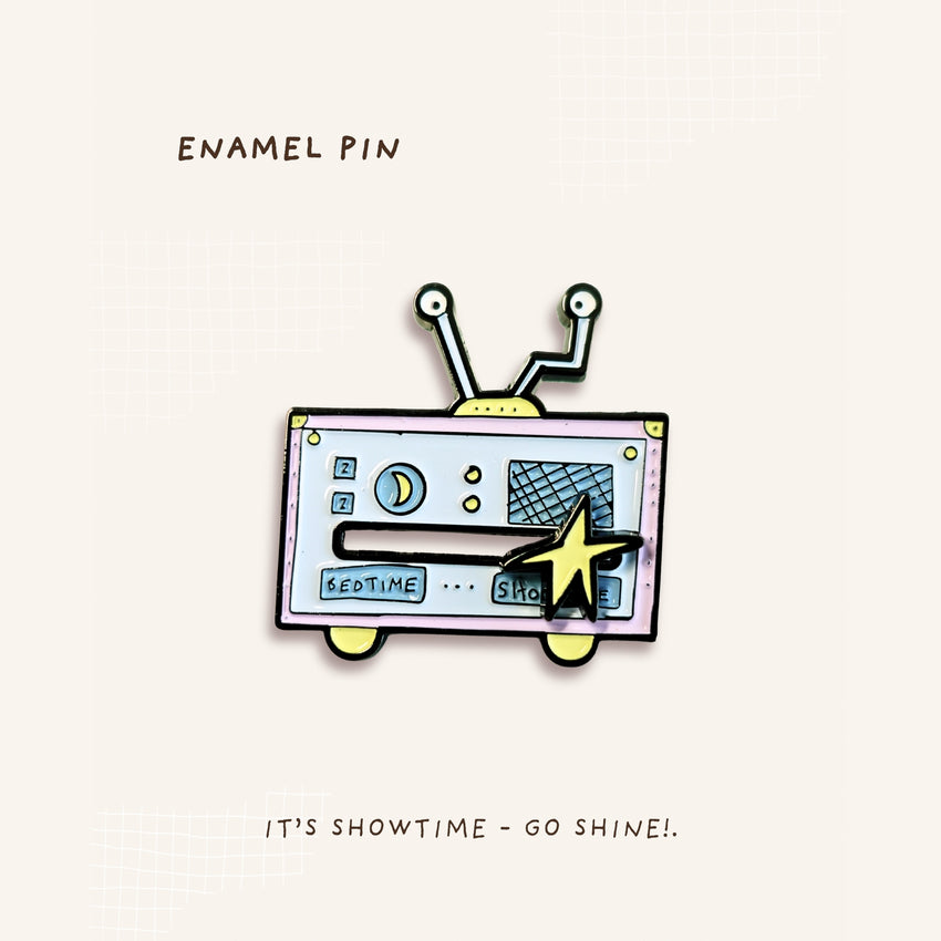 Turn up the fun—literally! This playful radio pin comes with a moveable part, letting you slide into “Showtime” mode. With Marty’s quirky hand-drawn style, it’s a retro throwback that adds a spark of joy to any outfit or pin collection. Perfect for music lovers and storytellers ready to broadcast their vibe.