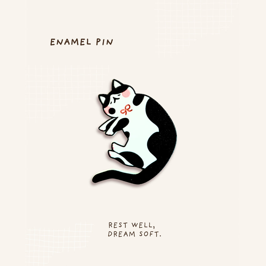 Purring, stretching, and ready to nap—this cat pin captures the pure joy of a lazy afternoon cuddle. A soft touch of warmth you can carry anywhere.