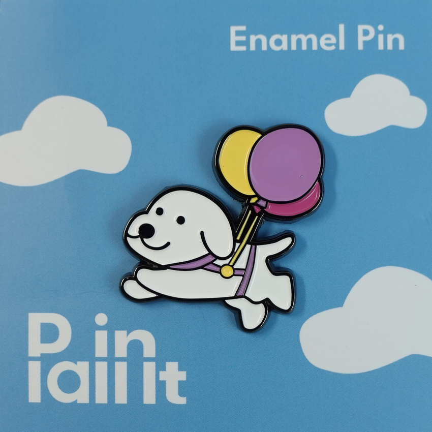 "Fly high, live light, and love freely~" This pin features an adorable white dog floating with colorful balloons, adding a playful and uplifting touch to your bags. It's the perfect little gift to bring a smile to someone's face.