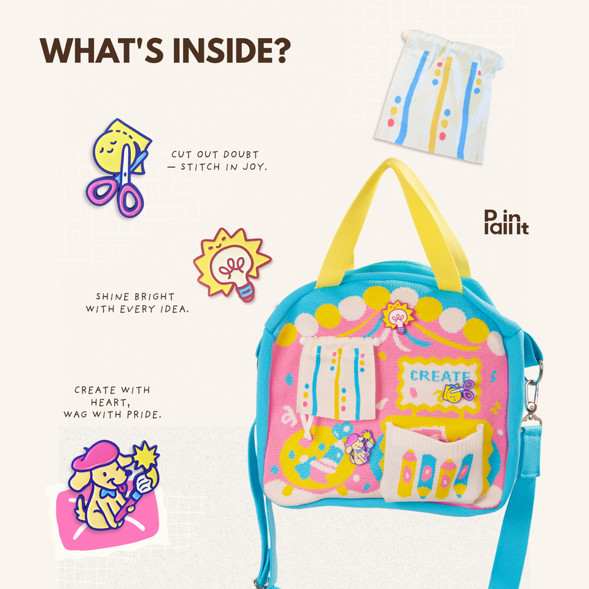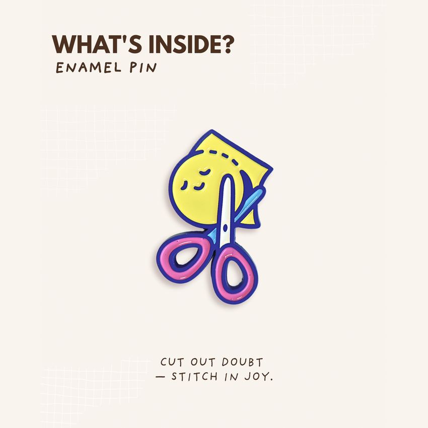 ✂️ Each enamel pin sparks a piece of the story — whether it’s scissors cutting away doubts or a pup cheering you on.
