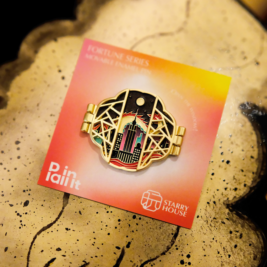 Created in collaboration with Starry House Studio, this pin adds a playful touch of fortune to your collection.