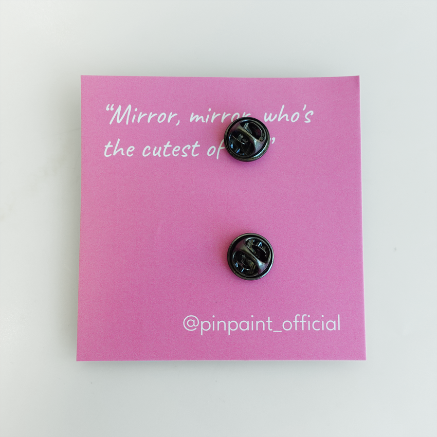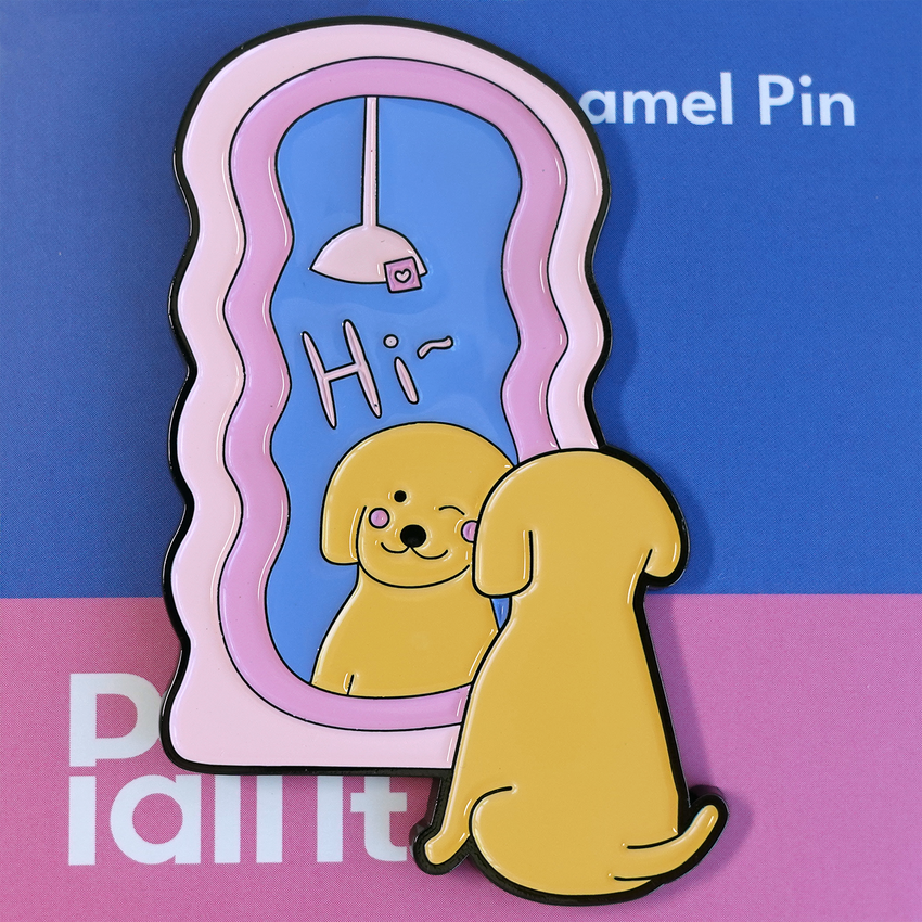 “Mirror, mirror, who's the cutest of all?” This pin features an adorable dog gazing into a mirror, greeting its own reflection with a cheerful “Hi.” Capturing the joy of simple moments, it’s a reminder to smile and embrace yourself. Perfect for dog lovers or anyone who enjoys a playful and whimsical design, this pin is sure to add charm to your collection or outfit.
