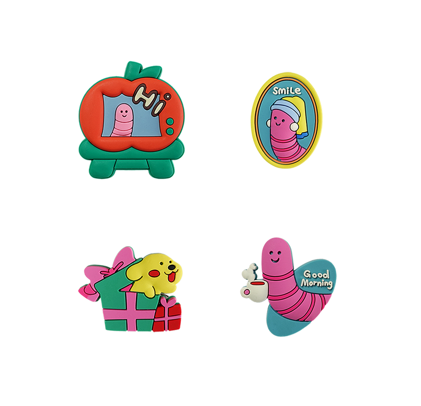 Step into the magical Apple House, where GoGo explore a world full of charm and surprises! Inside, they meet a friendly little worm and discover a cozy, colorful home like no other. This original 4-piece pin set brings their whimsical adventure to life, adding a touch of fun and imagination to your everyday style. Perfect for pin lovers who adore a story with a smile!
