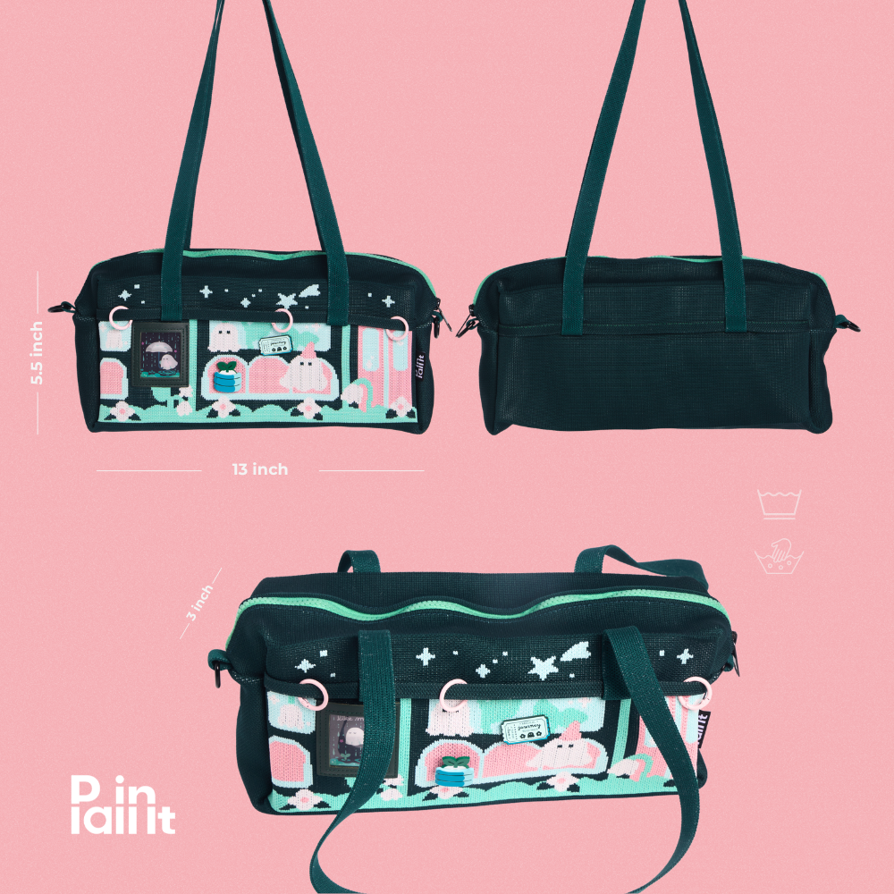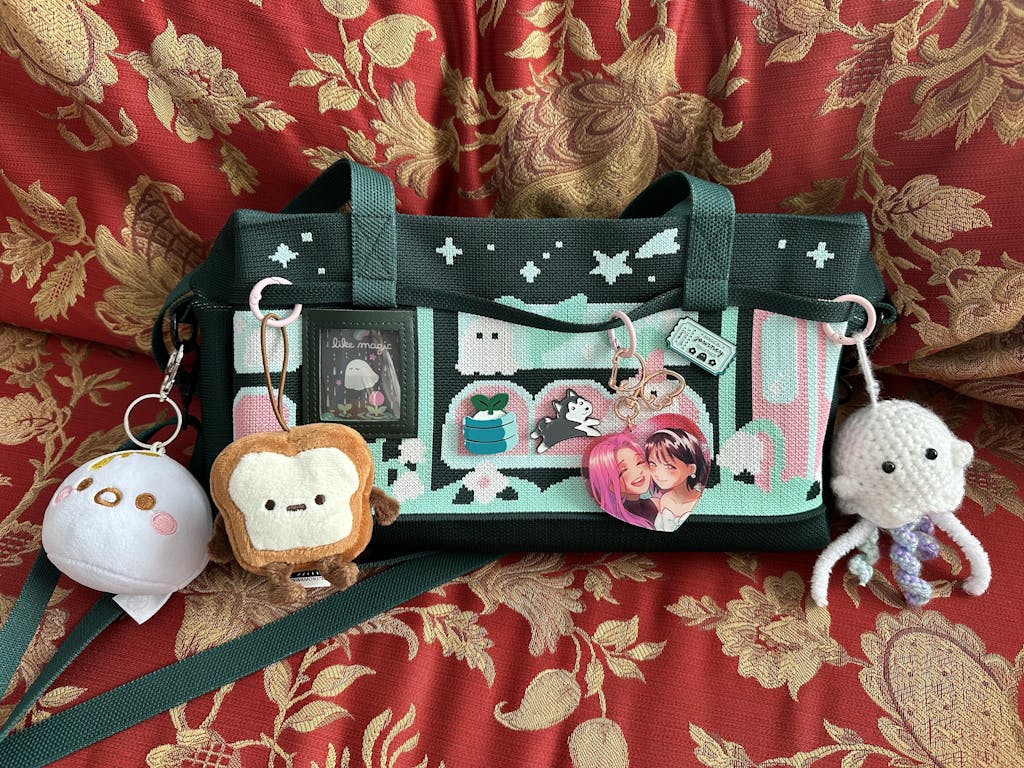 When I saw that one of the artists I like was collaborating with PinPaint for a bag, I knew had to get it! I loved all the pins that came with it, as well as the adjustable strap! The design is adorable and I love when I get compliments on it :’) The only tiny issue I had was the zipper coming undone a little when I had the bag zipped shut. I could mostly fix it by unzipping it and zipping it back up again though, and it doesn’t really hinder my experience with using it at all. Other than that, everything is perfect!